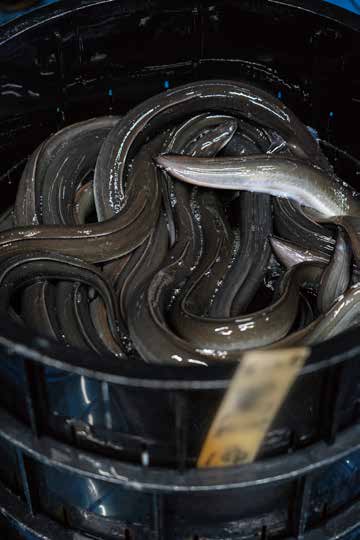 お客様に本当に美味しい鰻を召し上がっていただくため、ての字では選りすぐりの養鰻家よりその季節に最高の活鰻を全国の主要産地から仕入れています。