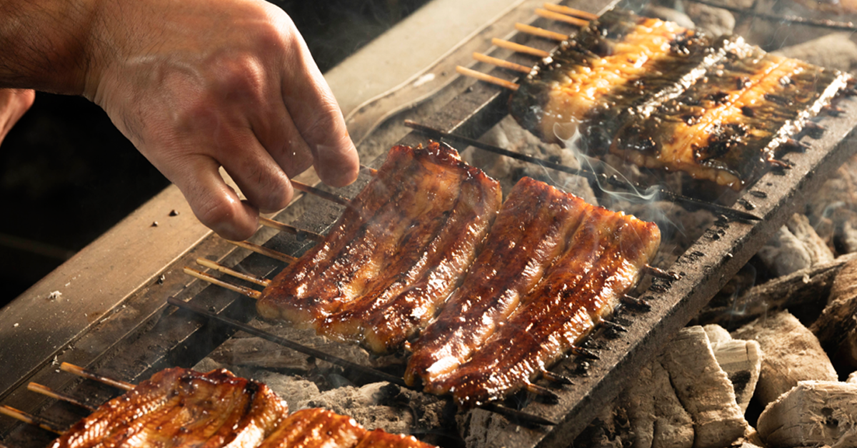 ての字ではうなぎの串打ちから焼きにいたるまで